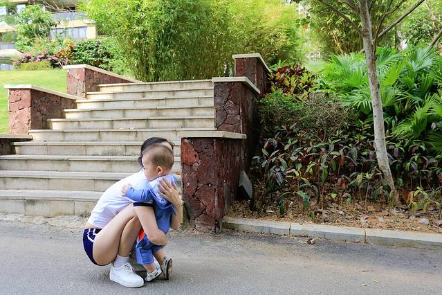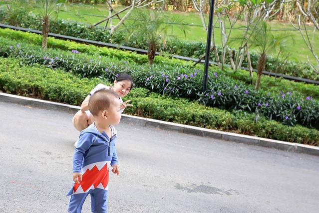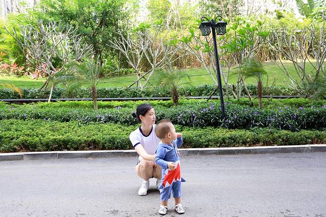简单熟悉了一下小区的环境之后,我们回去吃了丰盛的海鲜早餐,你死死的缠着妈妈,说什么不分开,哈哈,可真是把你妈妈累坏了。但是这个时候妈妈还是精力旺盛的,带你去了本次旅行你去过的唯一的景点 —— 亚龙湾热带森林公园。