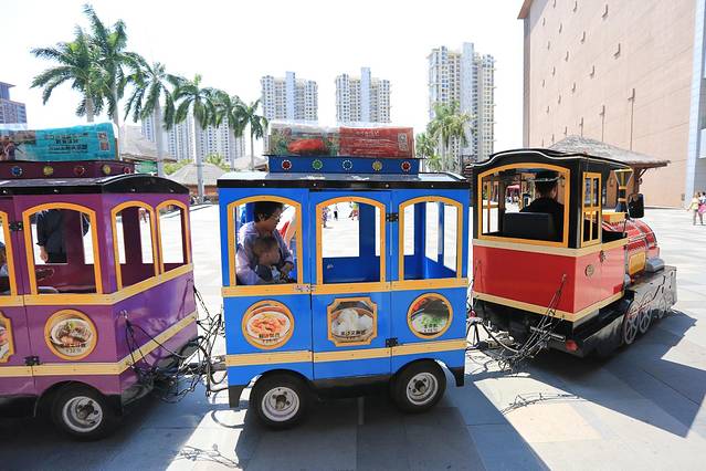 三亚湾的红树林果然超级豪气,简直就是酒店、商店、饭店、影院的娱乐综合体,刚到你就吵着嚷着要坐小火车,奶奶陪你玩一圈吧!
