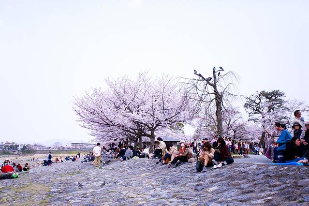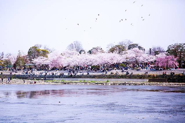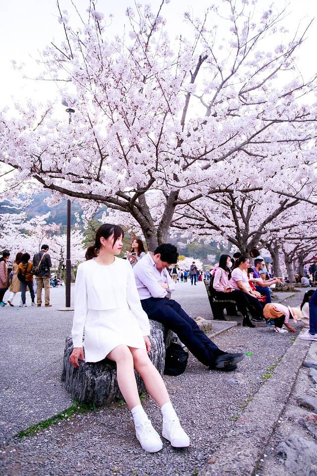 过了桥就是岚山公园,下午的公园,樱花树下已经坐满了游玩的家人和畅聊的朋友,也有单身一人的坐在树下,拿一瓶啤酒或一瓶清茶,配一个纸杯,也可以这样慵懒上一个下午。