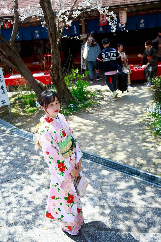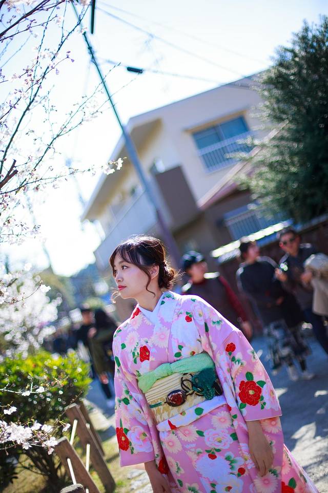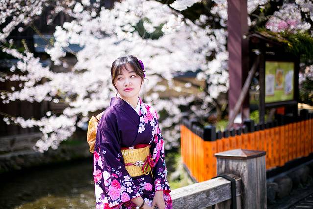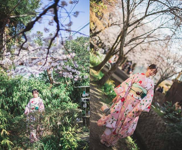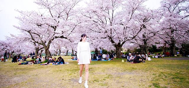 各种颜色各种搭配的和服女生,有素雅的,有艳丽的,有深沉的,也有活跃的;不管你的选择是什么,在樱花树下,你都像是穿越过来的古装美人。和服最大的魅力就在于抛离了统一化的美,把你内心最渴望最认同的美丽描绘了出来,穿在了自己的身体上。