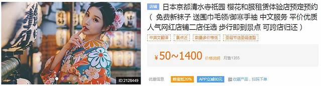 因为是第二次来 京都 ,因此这次在和服店铺的选择可以算是精挑细选,在花费上破天荒得做到了不顾一切。首先对比了 京都 当地有名的冈本、梦馆等店,考虑到在选择衣服、发型、妆容方面的沟通顺畅,小步姑娘选择了马蜂窝销量第一的“樱花和服店”。