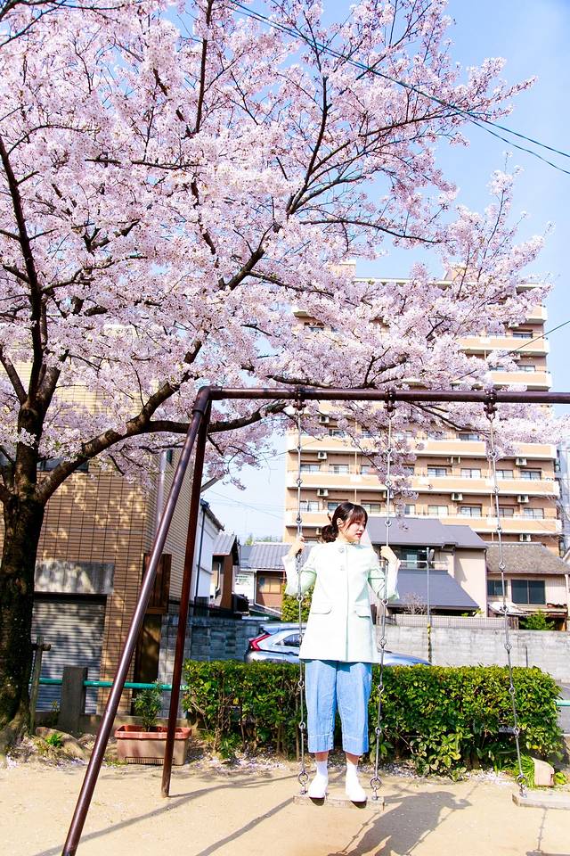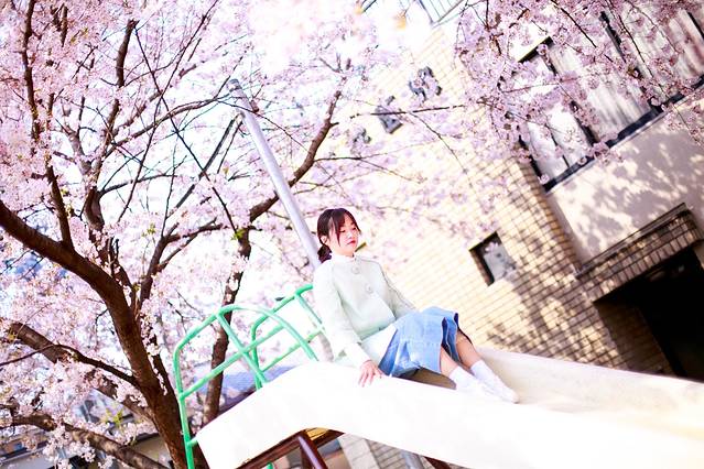 天气无任何征兆的变得炎热,小步脱下外套,换上一件白色长裙,想着白裙白袜总是和樱花搭配吧。