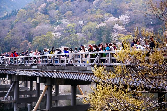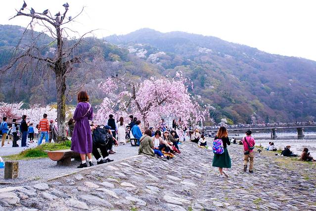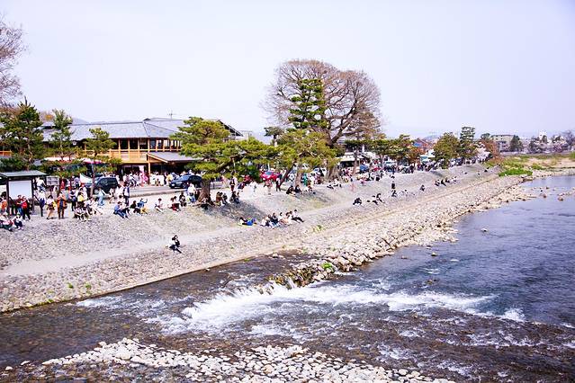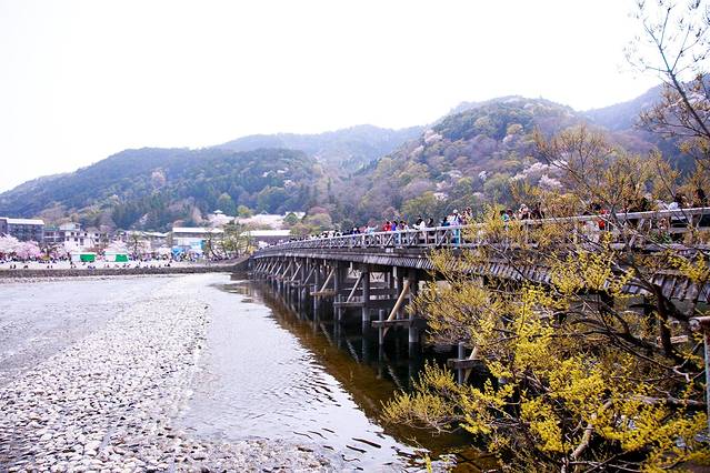 吃过甜品,我和小步姑娘漫步到了渡月桥旁,整个 岚山 地区就是以横跨桂川的渡月桥作为中心,这条桥的命名起源于“似满月过桥般”的诗作而得名。
