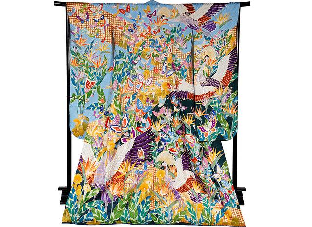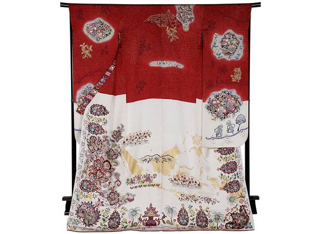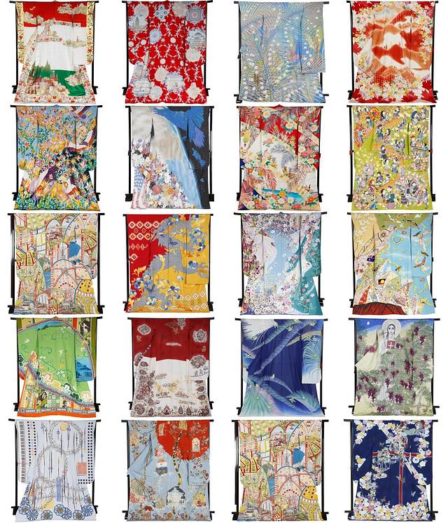 非洲国家尼日利亚款的和服,配色鲜艳,好像是用上了世上所有的染料,据说上面共有254只蝴蝶,代表尼日利亚的254个部族。