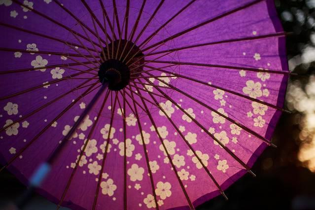 夕阳西下,撑伞的小步有了一些成熟女性的感觉。黄昏的时候,总是让人有些淡淡的失落和感慨,突然一种冲动涌进大脑,我想,下次我会选择一个冬季再次来到京都,怀着对自然的崇敬和对世俗的淡然再次走过一间间庙宇,静静的坐下来,看四方的庭院,看挺拔的苍木。