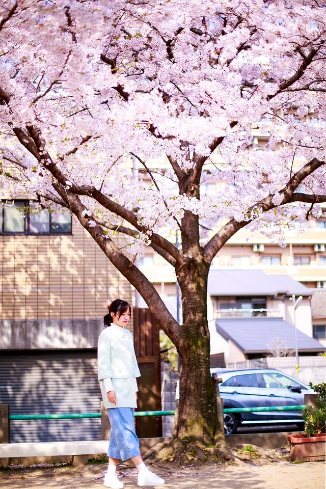 一棵满开的樱花树下,只有你一人,只属于你一个人,在这个季节,你好像是拥有了全世界的美丽。