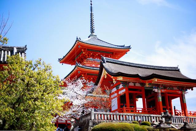随着清水寺就在眼前,我煞有其事的给小步姑娘普及起了清水寺的知识:清水寺是 京都 最古老的寺院,也被列入了世界文化遗产名录,是 京都 最有名的赏樱名所之一。相传是由唐僧玄奘在 日本 的第一个弟子慈恩大师创建的,还真跟东土大唐有一些关系。