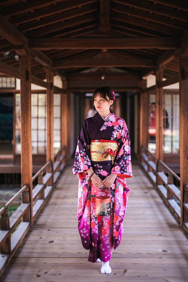 遵循着上条和服摄影的原则,需要在加上两条,因为秀美的和服解决了小姐姐们穿着选择的问题。那么到了自己选择衣服的平时,什么样的服饰和 日本 的风情更搭呢?