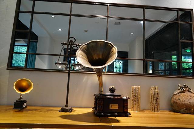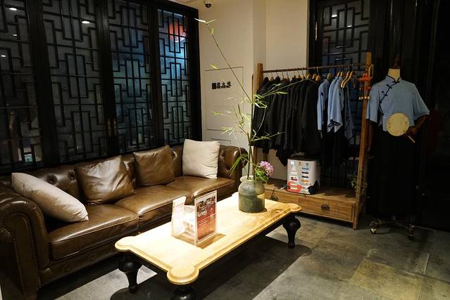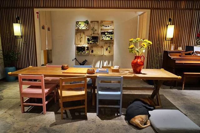 这里是酒店的大堂,有只可爱的拉布拉多狗狗看守着呢,哈哈~前台还陈列了一些民国女生的校服,可供客人租借拍照。