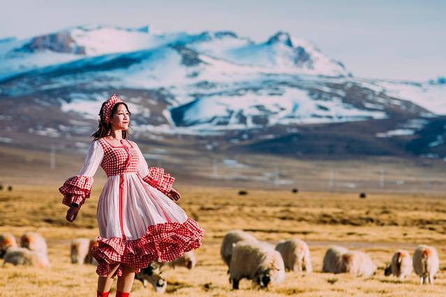 初到西藏的第二天就突增到5千米以上的海拔,一夜不太安好的睡眠,突然到来的生理期,和早上的羊群追逐而消耗的体力。所有不利的因素仿佛都聚合起来。