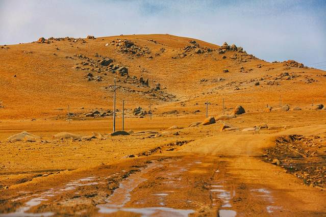 也有不少车辆从旁边标示着”禁止通行“的土壤上肆意地驶过,虽然貌似比土路要省去不少时间,但是周围的土壤冷不防会暗藏坑洞,一旦陷车,就i只能等待救援,欲速则不达。一路上看到好几辆陷在泥中。而我们,依然不紧不慢开在颠簸的正途。