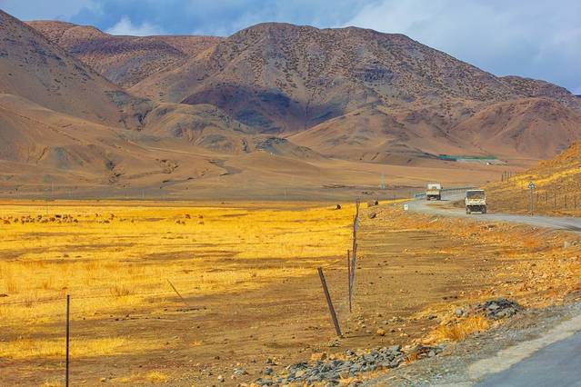 翻过那根拉山口之后,有一条开叉路。纳木错景区请往左,圣象天门请往右继续行驶4小时。