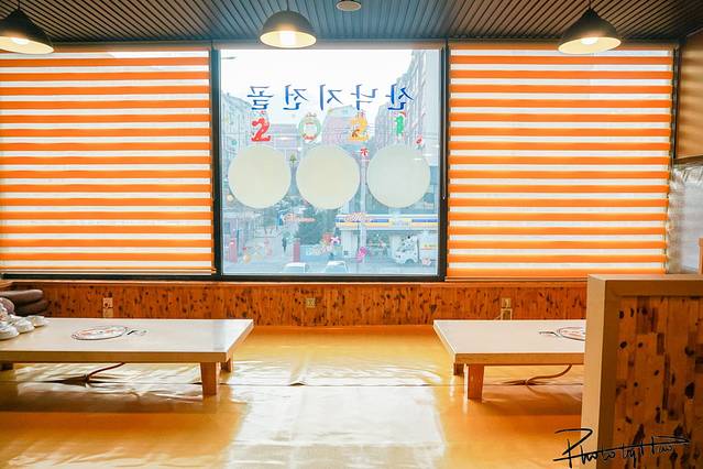 店里除了常规的四人卡座外,靠窗位是传统的 朝鲜 族炕桌。