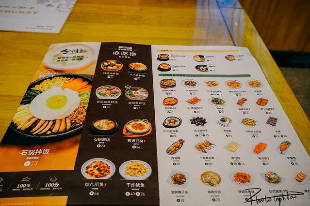 店里的菜单琳琅满目,我只点了一份招牌经典的石锅拌饭。