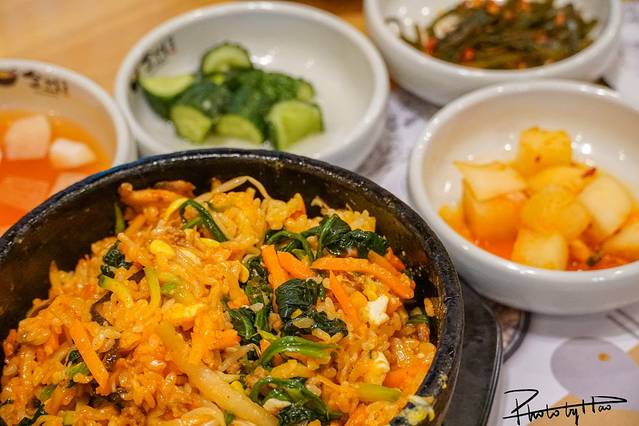 当时的我就在想,石锅拌饭不就是那个味道吗?热饭上盖上各式蔬菜在盖个荷包蛋淋上韩式辣酱。