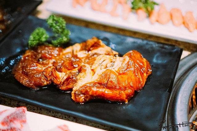 不过他们这里每烤完一种肉类就要换一个烤盘让我倒是挺诧异的。我之前吃过的普通炭火烤肉基本都是要等烤盘烤黑了才会换烤盘。