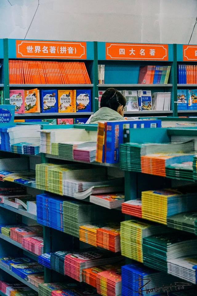 这里就像我记忆中小时候新华书店的样子,普通的木质书架,堆满了各式各样的书籍。