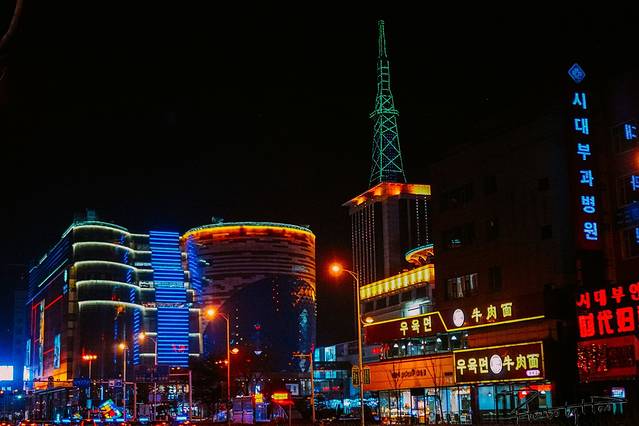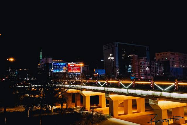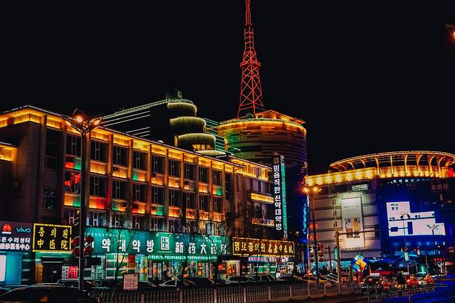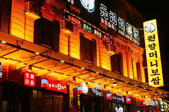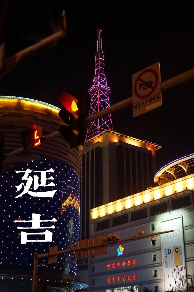夜晚的灯光把小城的轮廓勾显,夜色中的 延吉 比白天更添了烟火气息。