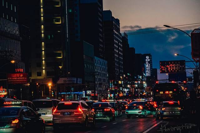打了滴滴后坐在后座,看着汽车飞快的驶向城市的霓虹。
