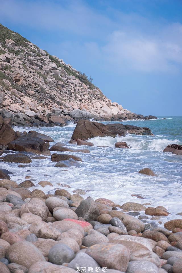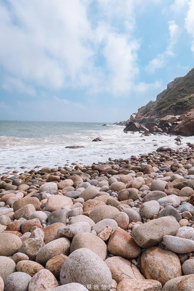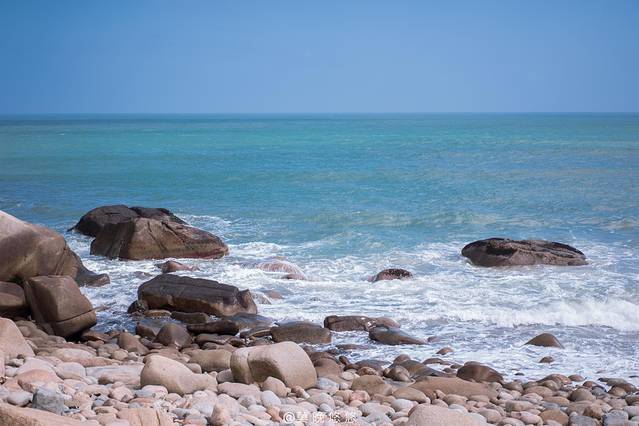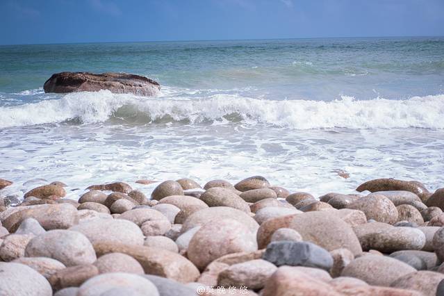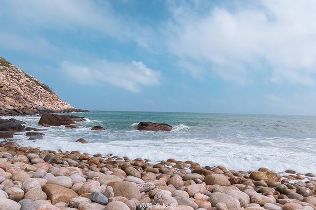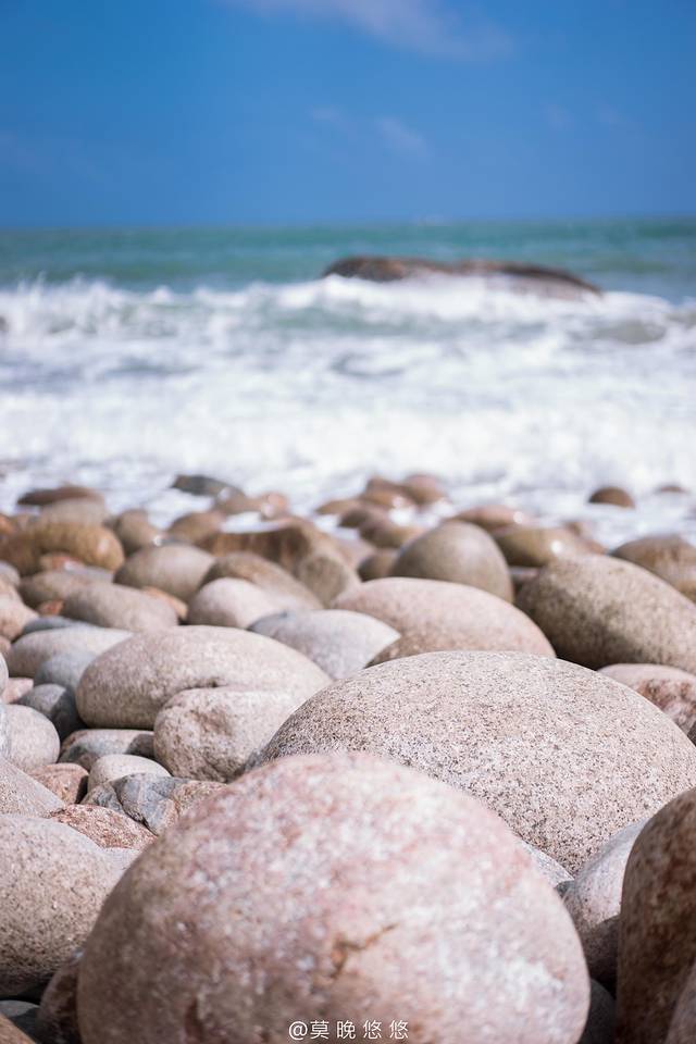 海浪汹涌异常,拍打在石头上发出“砰砰”的声,这些石头大概就是在海浪长年的拍打之下,才会变得如此地圆润。
