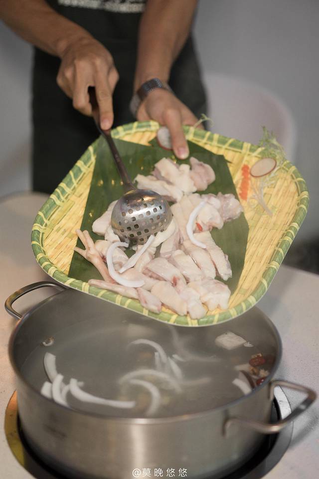 另外的主角就是鸡肉了,来自 文昌 散养的走地鸡,放进汤底煮个三分钟就可以吃了。