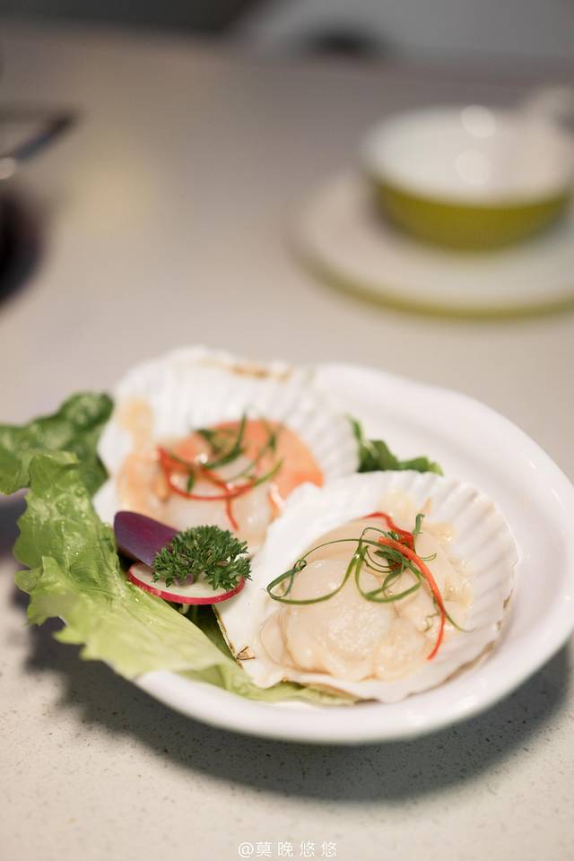当然除了吃鸡肉之外,我们还点了其他的菜。推荐大圆贝,个头十足,饱满肥美的肉放进锅里涮上一会就可以吃了,味道非常鲜甜。