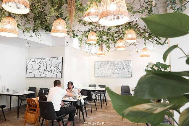 店里的风格我个人超喜欢的,很清新的INS风,白色为主的色调再加上花花草草点缀,不得不说,在这么好的环境下吃饭,感觉食物也更加美味了几分。