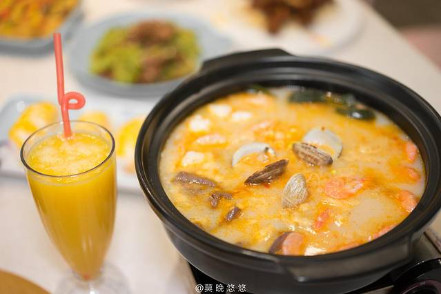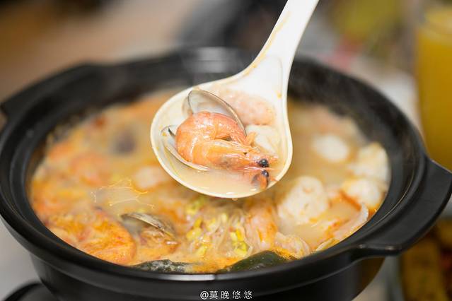 必点菜式首先就是糟粕醋海鲜火锅,这是 海南 当地一个非常特色的菜品,选用铺前的糟粕醋,里面加入各式各样的海鲜煮成的火锅,汤底喝起来酸辣开胃,而贝壳,基围虾,鱿鱼等海鲜非常鲜甜肥美,喝上一碗瞬间就把味蕾打开了!