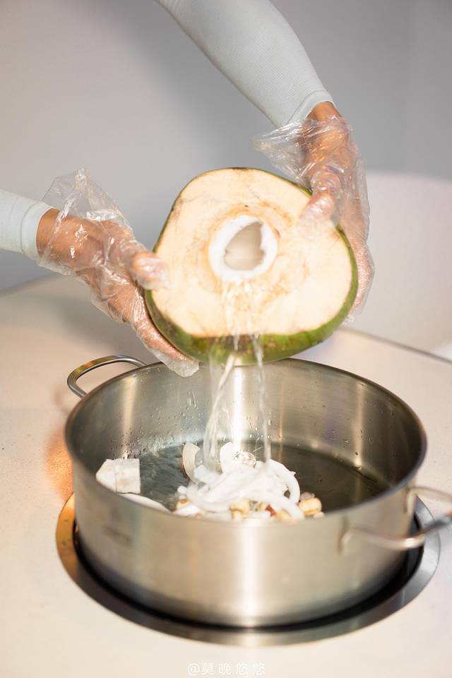 主打菜就是椰子鸡了,它的锅底是由三个椰子水跟一瓶矿泉水组成的,服务员会在我们眼前一一把椰子水倒进锅里,不用担心偷工减料~