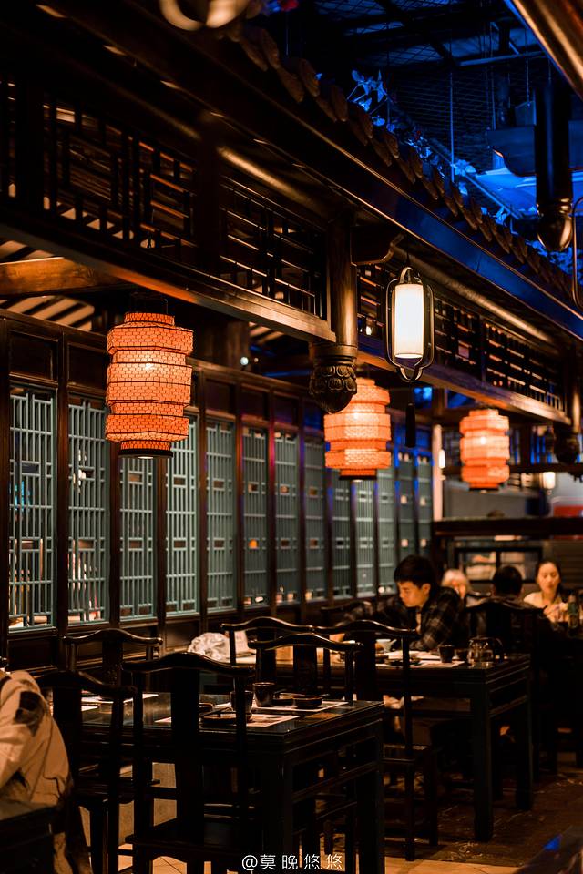 木质屏风,圆拱门,红灯笼,真有一种到了 江南 水乡的感觉。