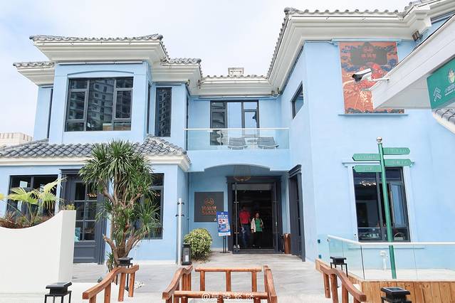 一来到这家餐厅,就被它的外表给吸引了,浅蓝色的独栋洋楼。