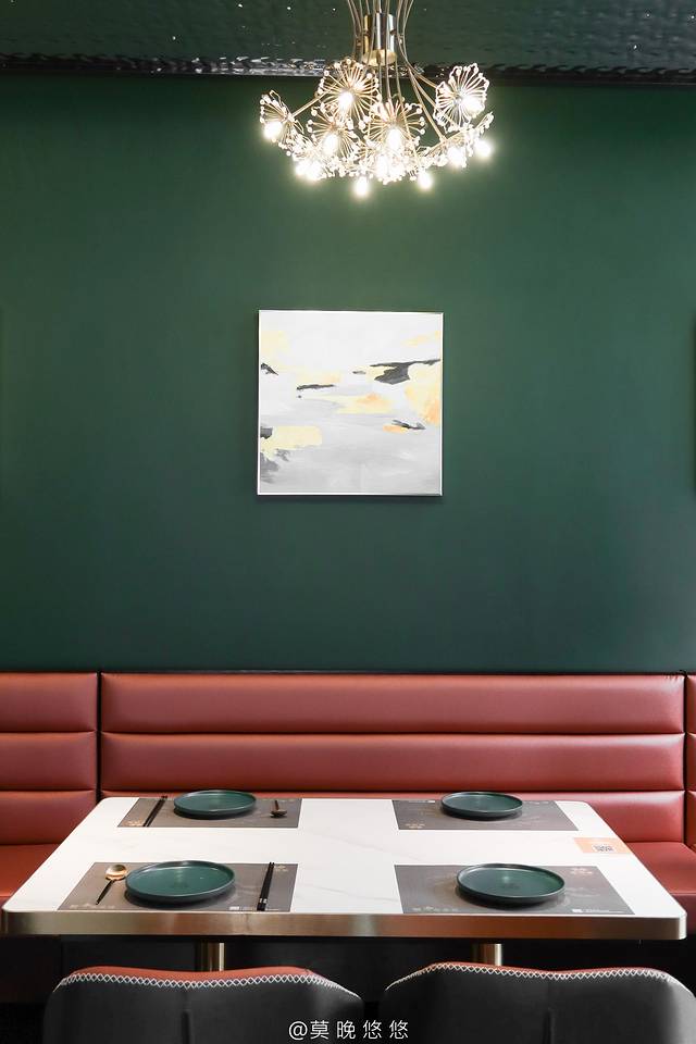 走到里面则是以墨绿色为主色调的典雅餐厅,就像走进了电影里的那些 法国 餐厅一般优雅,简约。