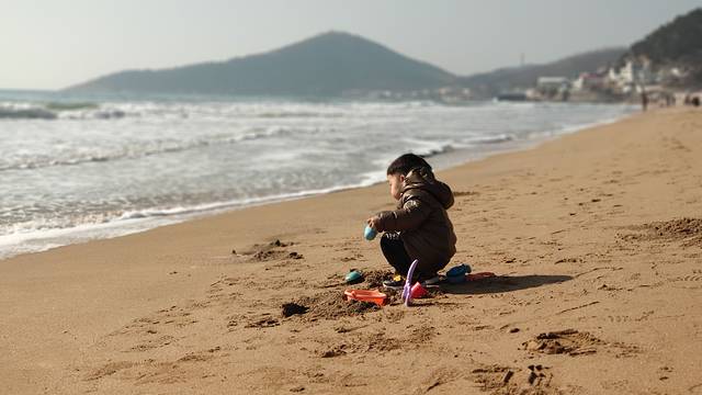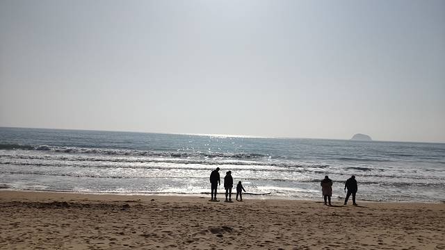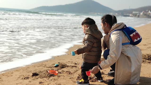 从小院出来就是流清河沙滩🏖️,九点多钟的海边阳光明媚。
