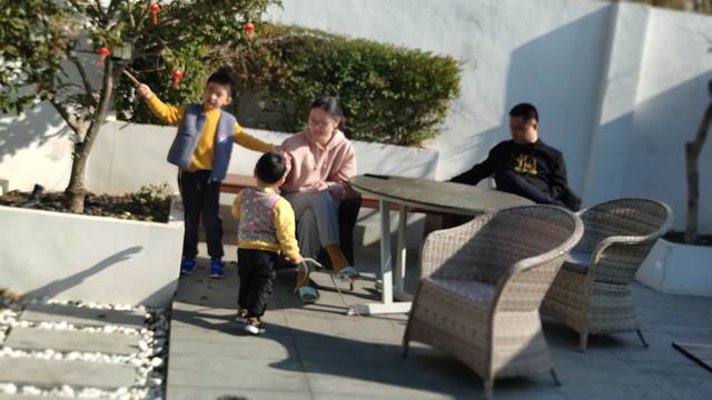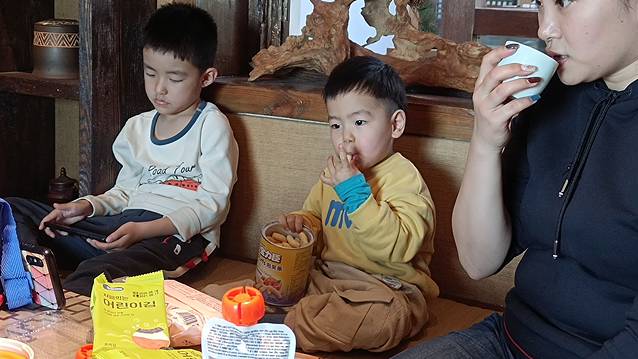 兜爷和成哥吃完饭就窝在一起,屋里院外到处跑。