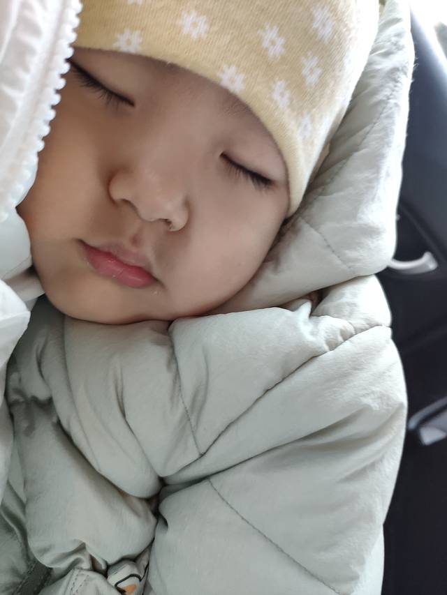 一上车兜爷就睡了,一直睡到我们在饭店快吃完饭才醒。