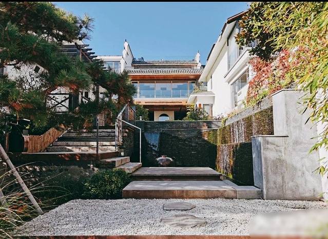 酒店的位置是在半山腰上,从大路拐下小道来就能够看到一座非常漂亮的房子。