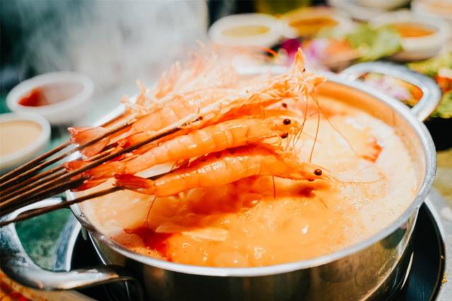 酸酸辣辣的冬阴功汤煮开之后,里面的香料包里的各种香料相互争抢着散发着它们的香气,随着滚烫的汤水所发出的水蒸气烟雾吸入鼻腔,极具诱人的同时却又不冲鼻,再往汤底中加入新鲜椰汁,椰汁的清爽鲜美与冬阴功的酸辣完美融合,极尽所能的唤起了胃的渴望。