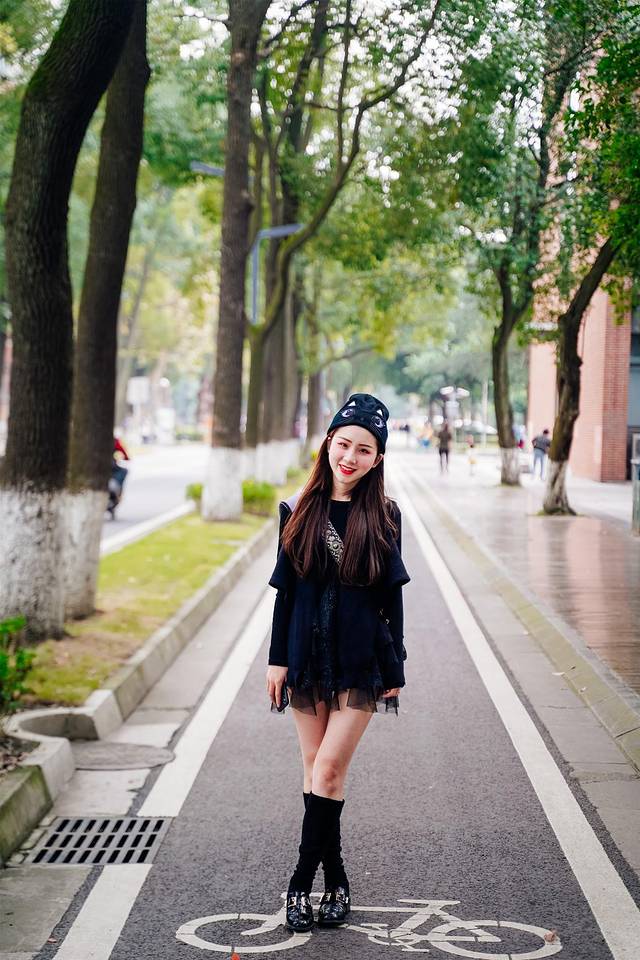 这条街也是意外的好拍,背景的红墙绿瓦非常好看。