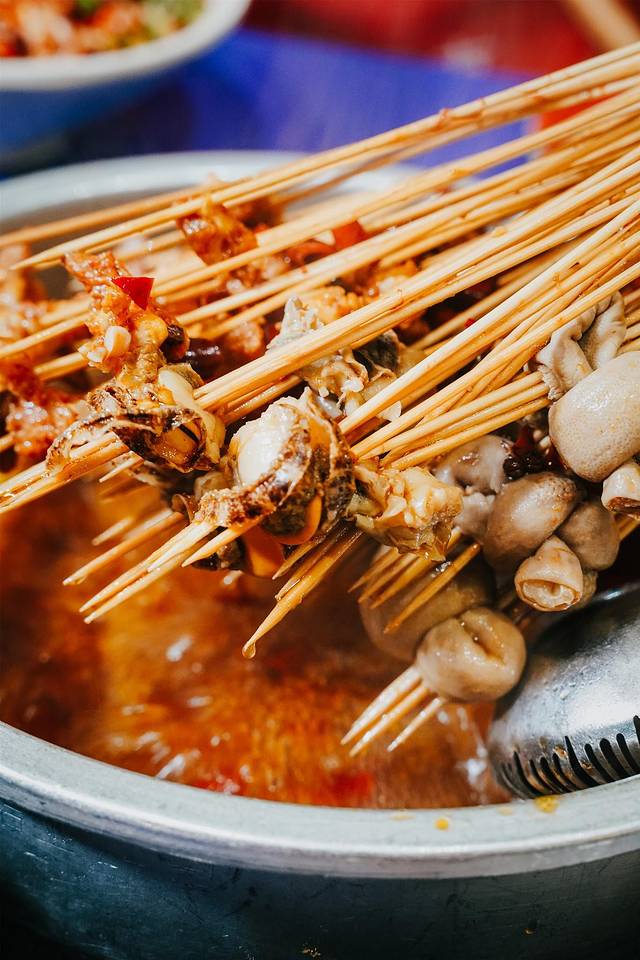 成都美食打卡中,钵钵鸡绝对是不能错过的,而叶婆婆钵钵鸡绝对是成都钵钵鸡品牌中极负盛名之一了。在这一串又一串的荤素搭配间,就可以让人品尝到极致的麻辣鲜香之感。
