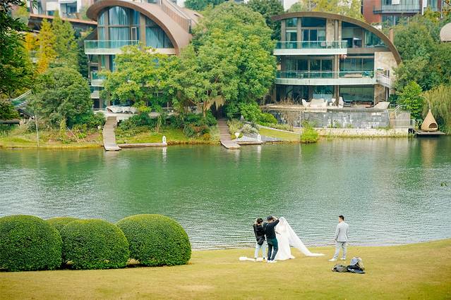 翠绿青葱的草地,波光粼粼的湖泊,粉红如画的建筑,都让人沉醉其中,如痴如幻。
