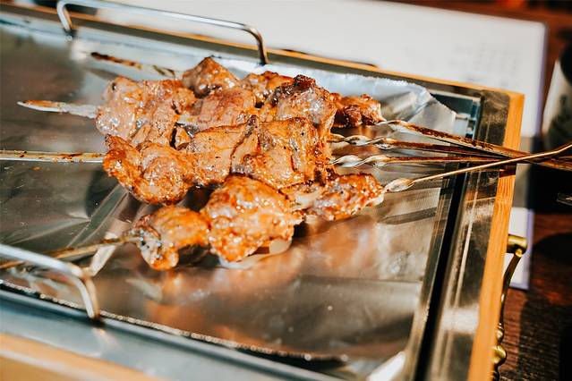 羊肉串、烤肉串、黑椒牛肋条等等串串,因为小A真的抵抗不住肉的诱惑,所以就通通点了一遍。每种肉串口感都非常好,肉质很鲜嫩不说,一口咬下时还会有油脂轻轻流出来,简直太nice了~
