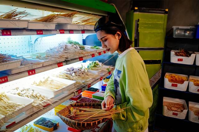 叶婆婆钵钵鸡的菜品选择非常多,让人有种所有食材都可以用来串成钵钵鸡的感觉。