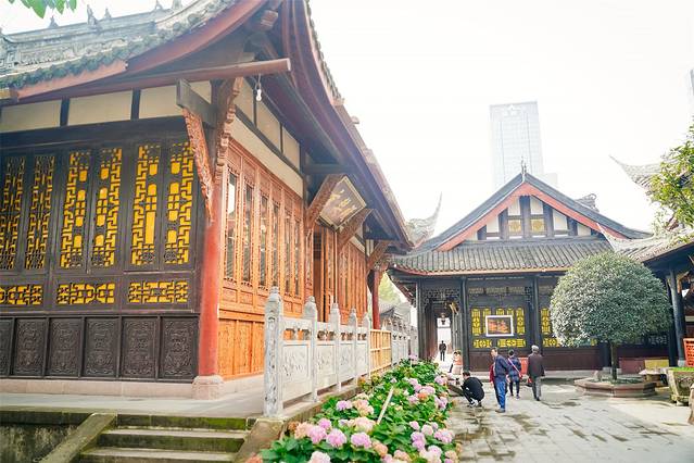 文殊院始建于隋大业年间,是全国佛教的重点寺庙之一,也是成都最早的佛寺之一。处于成都市井之地的文殊院,却如处在远郊深山外般清净。寺院与滚滚红尘之间,仿佛就由着那红墙绿瓦隔开,但又靠着来寺院的信男信女们相连。