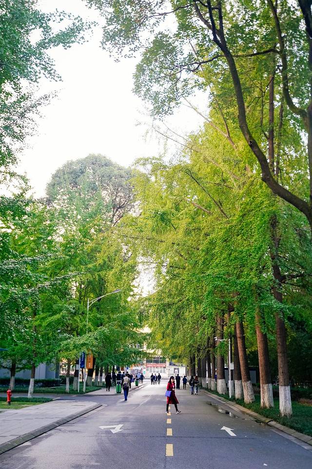 电子科大的银杏风景在全国的银杏观赏地绝对是名列前茅的,1600余棵银杏树在同一时间由绿转黄,大片大片的金黄晕染着整片街道,飘飘洒洒落下来的叶子,也仿佛如坠入人间的般俏皮又可爱。