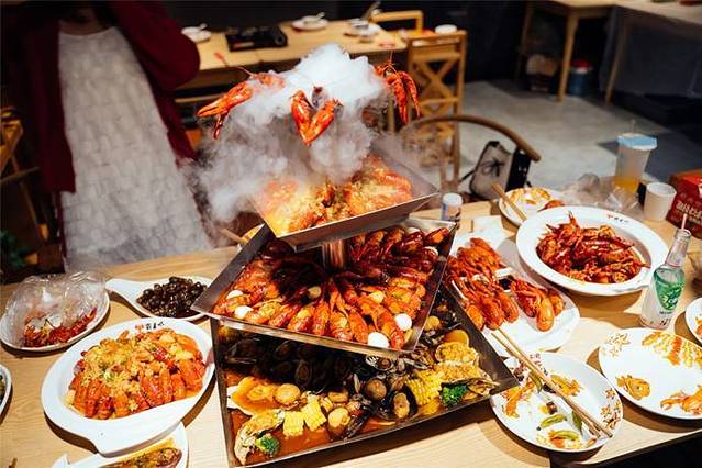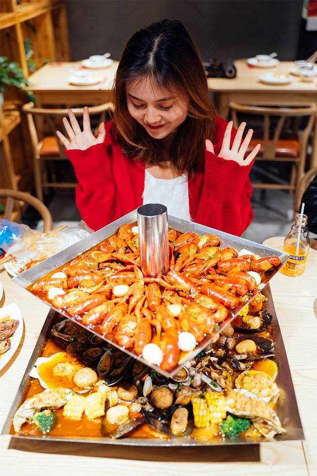 成都招牌美食之一,来成都必吃的麻辣小龙虾。龙虾哪儿不能吃偏偏要到成都来吃呢,噱头就在于这个似金字塔般的龙虾盛宴。