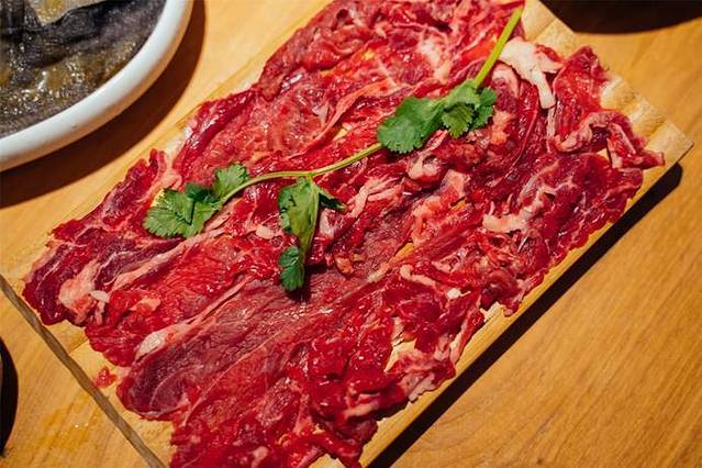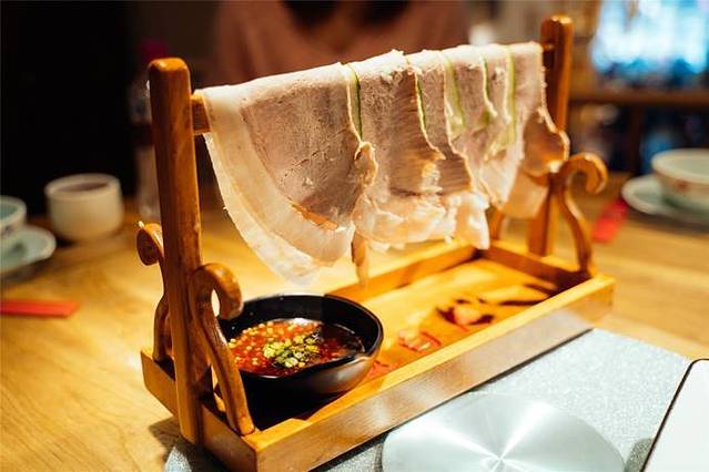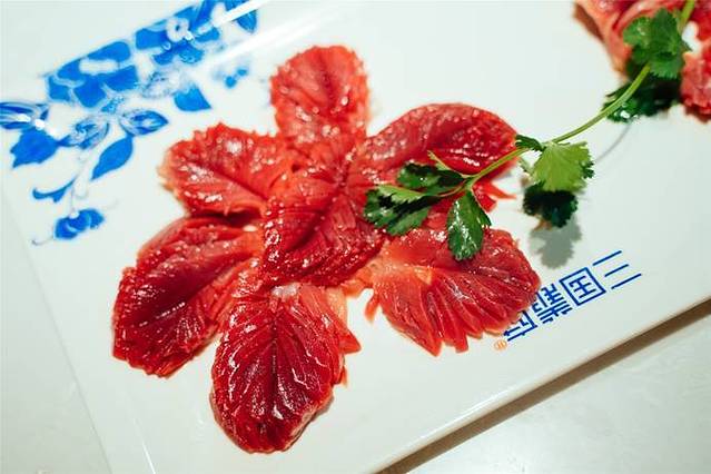 「手切嫩肉」肉质很新鲜,放在锅里几秒钟就好了,配着酱料吃在嘴里,美滋滋,就爱吃瘦肉,没办法呀。