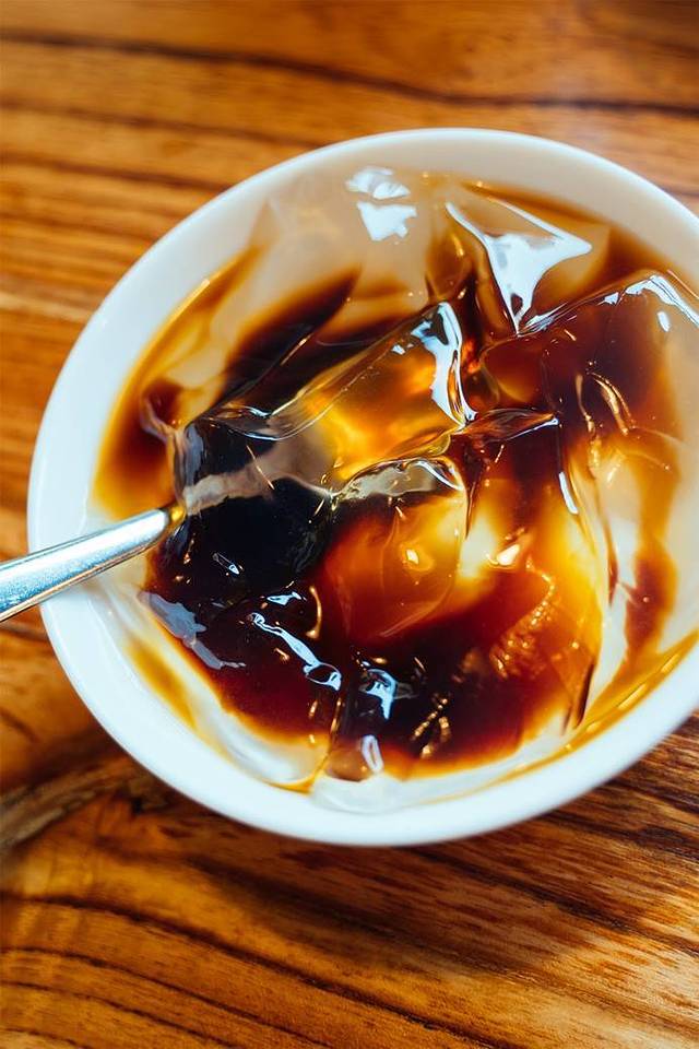 「老红糖冰粉」很简单的冰粉加了点红糖,红糖味很浓甜度很够占,冰粉滑滑的凉凉的很解油和辣。