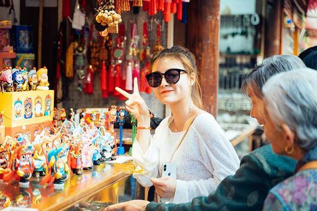 古街上,人们随着人潮流动,路边的各种布置无不显示一种精巧、一份精心。慢慢走过窄长的巷子,就仿佛回到时光里的锦,一瞬间惘然忘返。