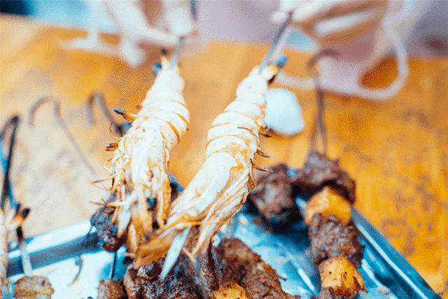 烤大蒜原来我觉得是黑暗料理,后来发现真的超级好吃,不试会后悔。羊肉搭配菠萝烤也是他们家的招牌,菠萝的特殊味道可以中和油腻的味道。最爱的是菠萝牛肉串,牛肉大块鲜嫩还多汁,菠萝清甜解腻,搭配得刚刚好,妙不可言呀!
