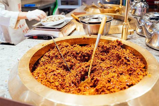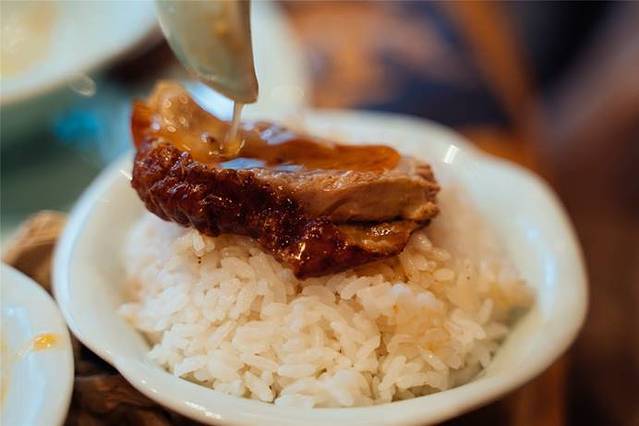 用金属容器装好鸭肉端上桌来一碗米饭,把卤油一勺勺浇在饭中,表满拌匀,好吃到爆炸,吃到最后想舔碗,香辣带劲,堪比小时候爱吃的油汤泡饭,一定要试试这种吃法。尝起来每片烤鸭都有汤汁的浓香,超级下饭,味道会稍微咸些,但是也不辣,大众都能接受。